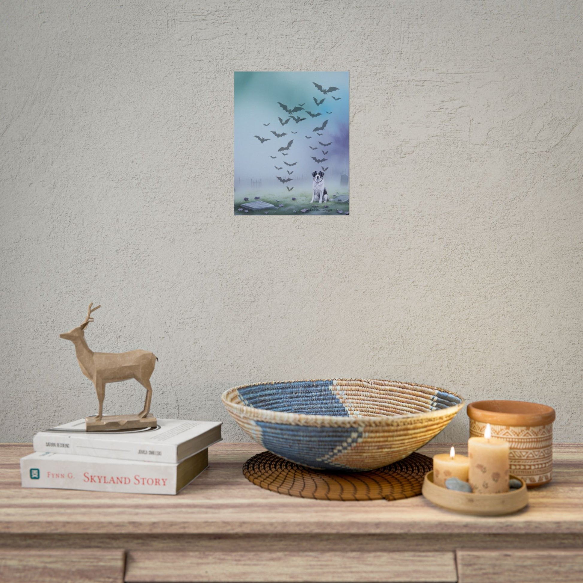 Whimsical Dog & Bats Art Print, Home Decor, Halloween Wall Art, Nature Poster, Pet Lover Gift, Animal Lover Decoration